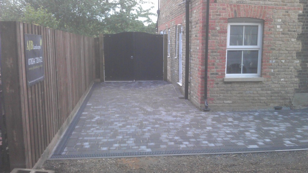 Block paved driveway and patio. The beginning. MOT Type 1 delivered. Compacted MOT Type 1. New gates. By AJB Landscapes | October 30, 2013 | Domestic, Driveways, Fencing, Patio | ← Brickwork in Harold Wood Extension of Sandstone patio and new landscaping. →